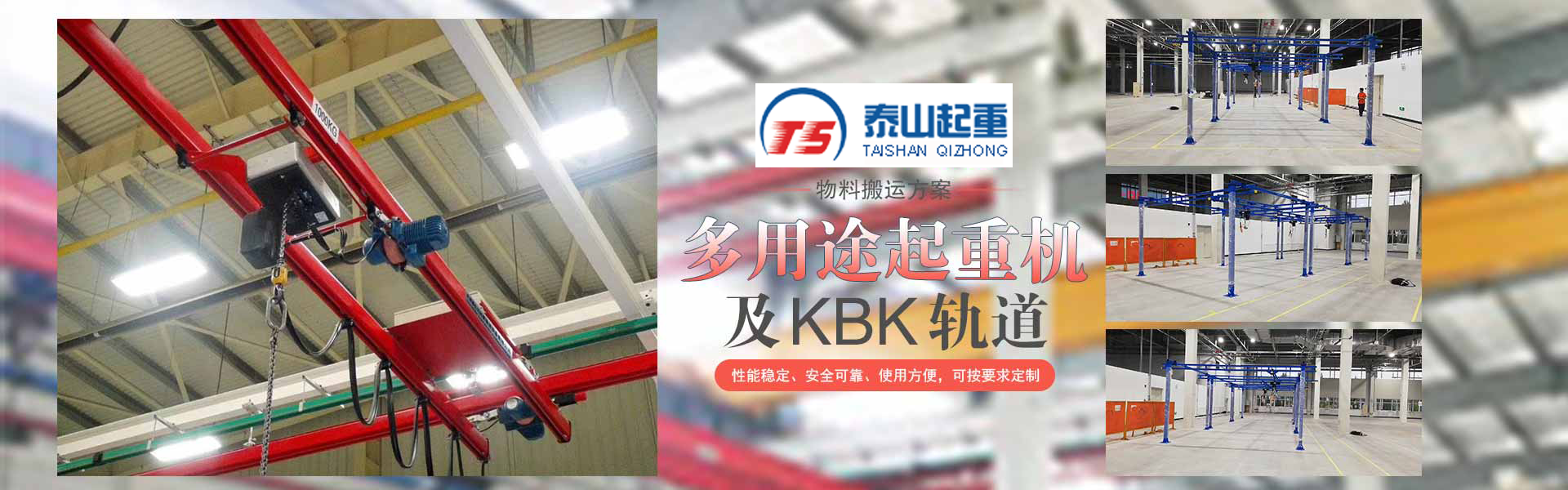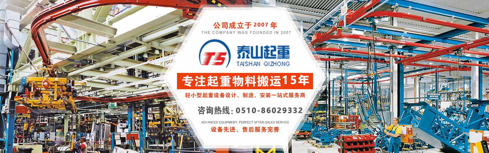 江陰市泰山起重設備有限公司座落在富庶的現代化港口城市——江陰市南閘鎮工業園區,緊靠錫澄高速,錫澄路,北依江陰港區,貫通滬寧高速的世界第四、中國第一的江陰長江大橋,穿越而過,飛架南北,高速至上海虹橋機場僅2小時,南又緊靠正在建設中的無錫國際機場,交通便捷,環境優美?! ”竟緦I為壁行式懸臂起重機、KBK軌道,鋼絲繩電動葫蘆、環鏈葫蘆、KBK組件,梁式起重機、電動旋臂起重機等配套起重機械配件,主要產品有:KBK軌道,梁吊掛裝置、環鏈葫蘆,KBK組件,手動式小車、行車走輪、電纜滑車等起重機配件,同時可提供起重設備的安裝、維修、為客戶提供全方位的技術咨詢等各項服務?! 」镜墓芾韺ⅰ耙匀藶楸尽弊鳛樽凇ぁぁ?..